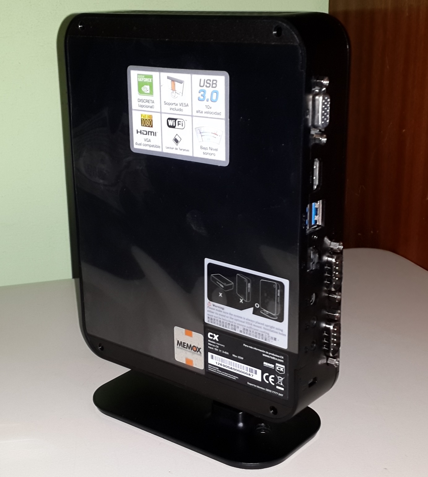 Las características técnicas son micro Intel Celeron, 4 GB ram, disco 500 gb , 2 puertos usb 3.0 y 4 puertos usb 2.0, 2 puertos seriales, puerto Ethernet gigabit, placa wi fi incluida y salida dual de video por hdmi y vga.